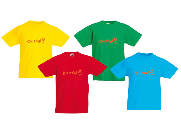 T-shirten är från det klassiska varumärket Fruit of the Loom och modellen heter Kids Valueweight T, vilket är deras storsäljare. Vikt 165 gm/m2.